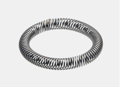 Canted Coil Springs (also known as wire-wound springs or seal springs) are wire-formed springs with helical coils that are engineered to be tilted or “canted” relative to the central axis of the helical coils. Canted coil springs are not straight like traditional helical coil springs, but instead are formed and welded into a circular or ring configuration.