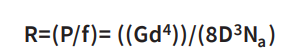 R = Rate of Spring P = Load f = deflection G = Modulus of rigidity of material d = Wire diameter D = Mean diameter Na = Number of active coils